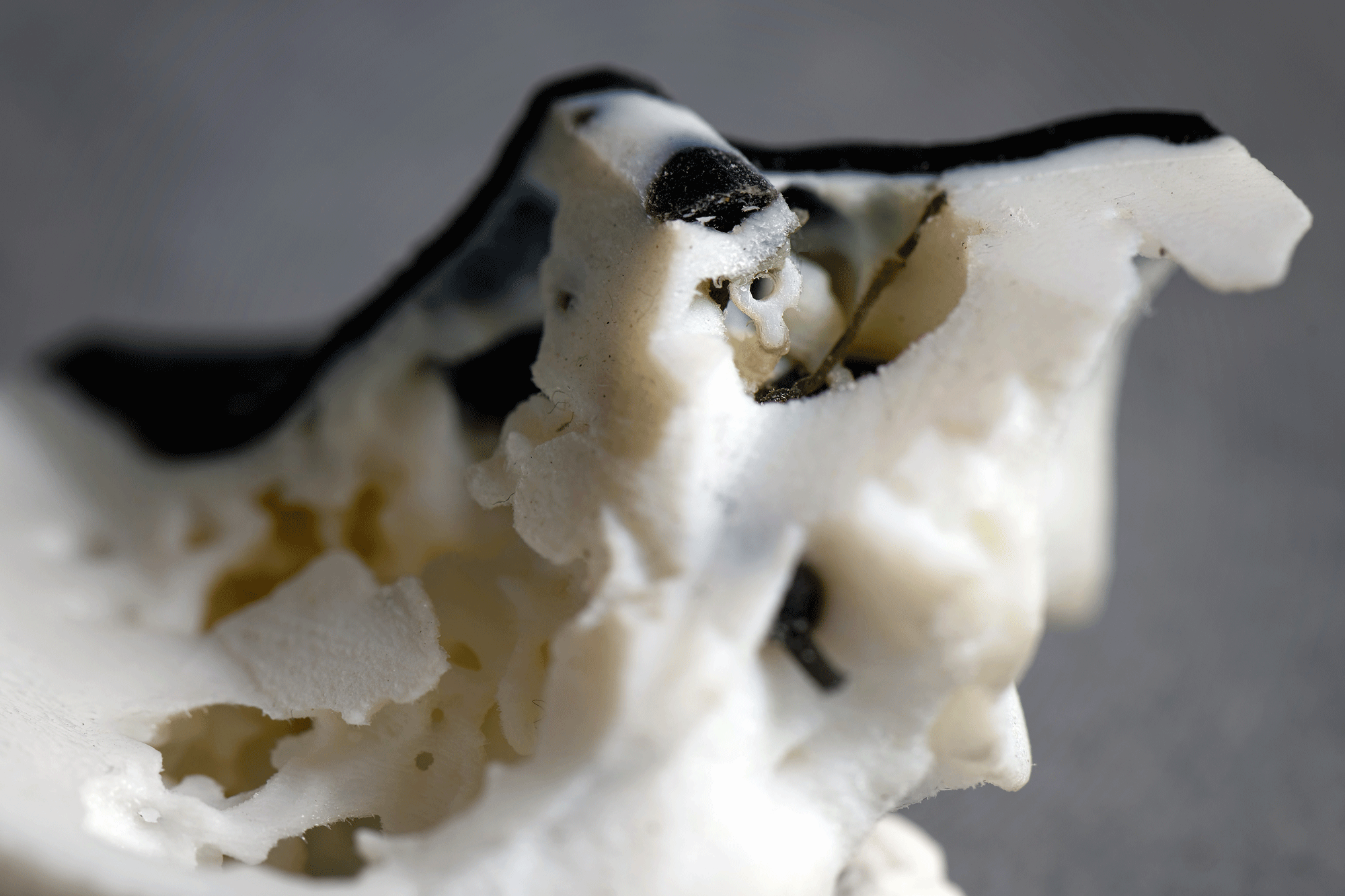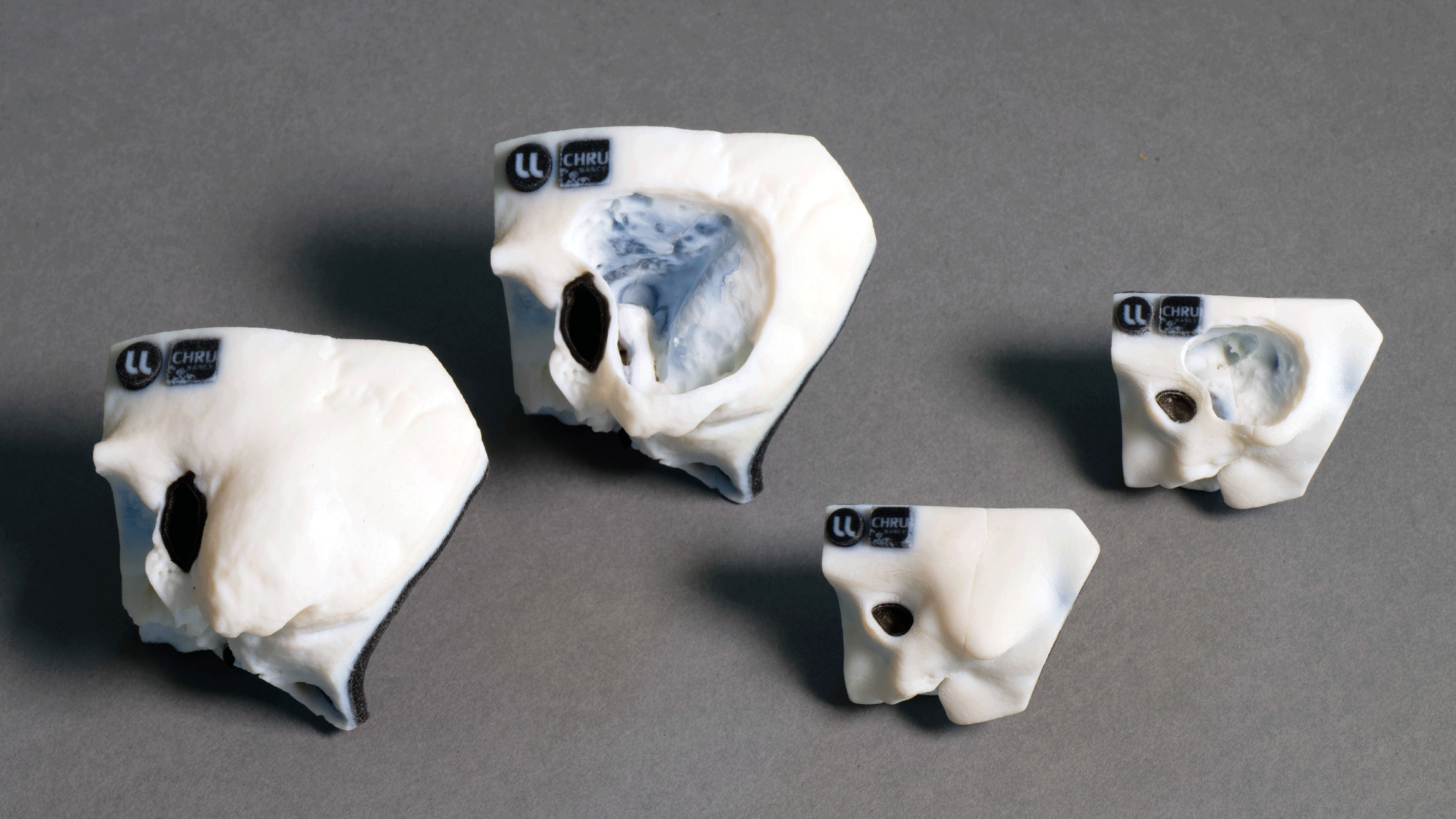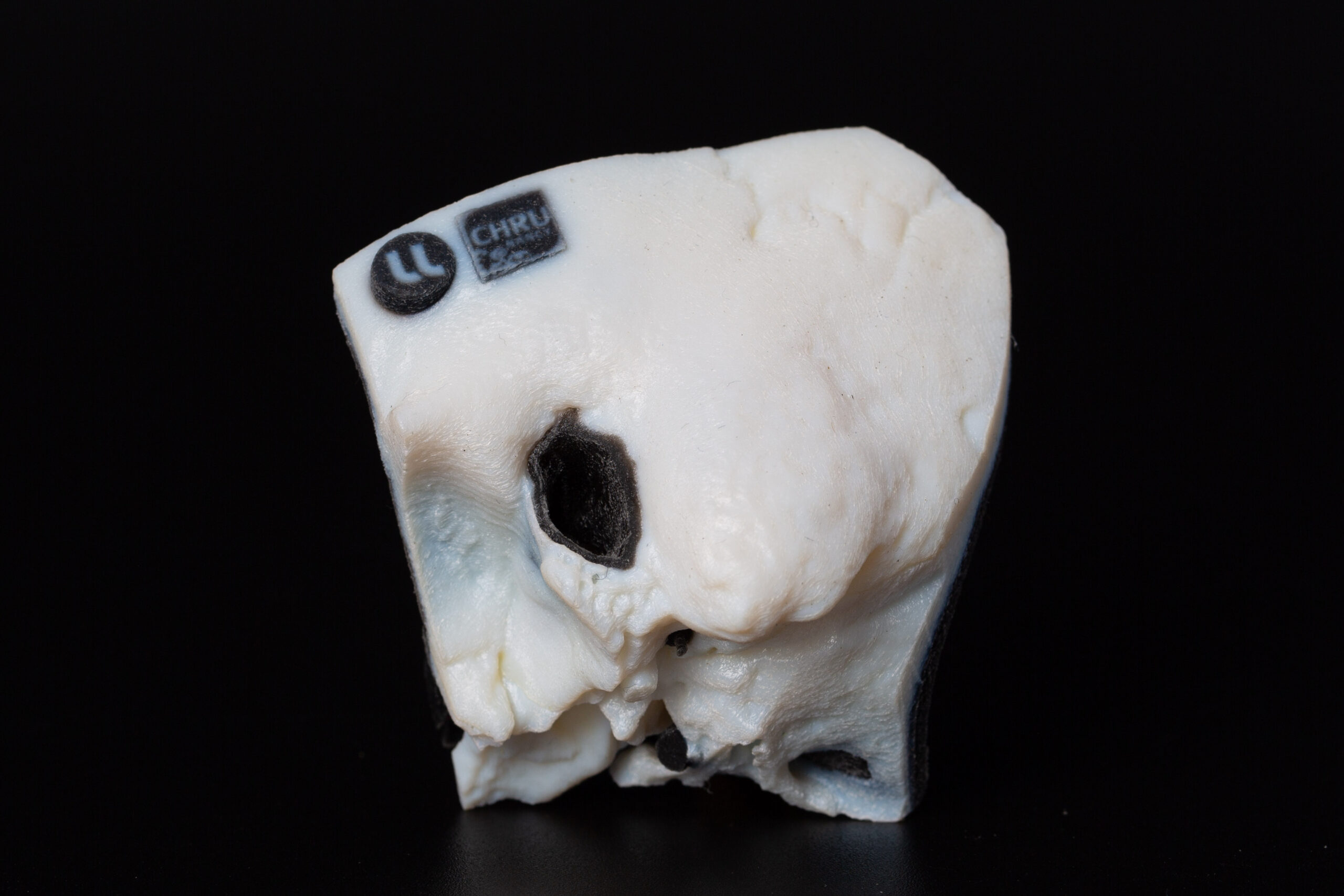 - Coexistence de résine dure reproduisant l’os, et de résine souple reproduisant les tissus mous